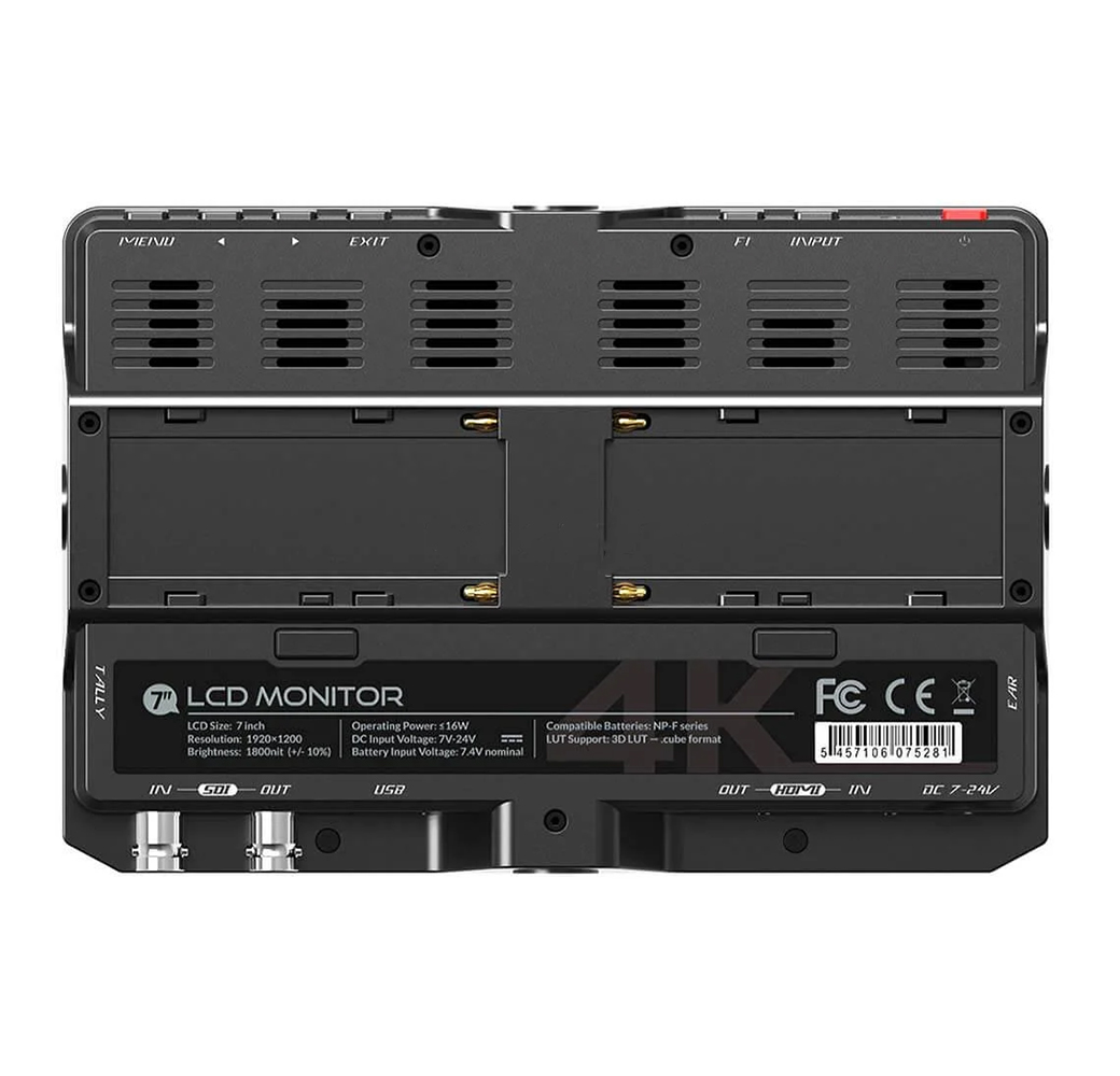 Der Lilliput H7S kommt mit zwei NP-F-Akkuplatten für eine längere Akkulaufzeit und einem Kopfhörer-Ausgang, um den Ton zu überprüfen. Er bietet außerdem zwei Funktionstasten zur individuellen Belegung und weitere Funktionen wie Audio-Level-Anzeige und Gamma.